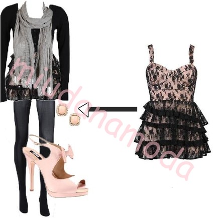 Com um vestido podes combinar umas leggins, um casaco, uma écharpe, uns saltos e uns brincos. Podes também levar uma máscara para tapar os olhos e umas orelhas de gata (em bandolete.