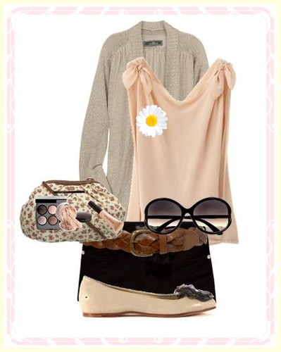 Este look é bastante fresquinho e com grandes contrastes entre peças de roupa: calças claras, top escuro. Gostei imenso deste top, não sei se é o teu estilo, este tem aquelas animações e com lantejoulas á frente das mesmas, ou seja, bastante brilhante! Para combinar com o top escolhi um casaco de malha cinzento e as fly london "tradicionais", em branco (Dii, como vais dançar podes trocá-las por umas sapatilhas, ou quando fores dançar descalças-te). Selecionei poucos acessórios, apenas: uns brincos, óculos de sol e bandolete.